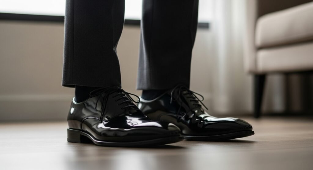 Overly shiny formal shoes can appear cheap and old-fashioned. They reflect too much light and rarely blend well with modern outfits. Instead go for matte or lightly polished leather shoes. These look more refined and timeless, instantly elevating your formal or office wear without appearing flashy.