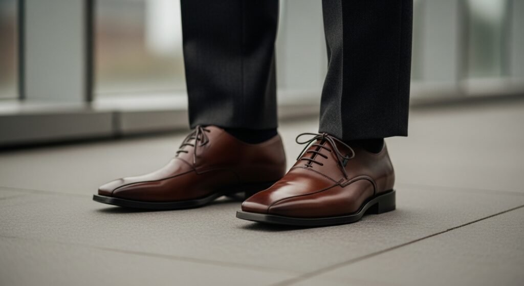 Square- toe shoes were popular years ago, but now they feel bulky and outdated. They lack elegance and ruin the flow of formal outfits. Rounded or slightly pointed- toe shoes look timeless and refined, instantly improving your overall appearance at formal events or work settings.