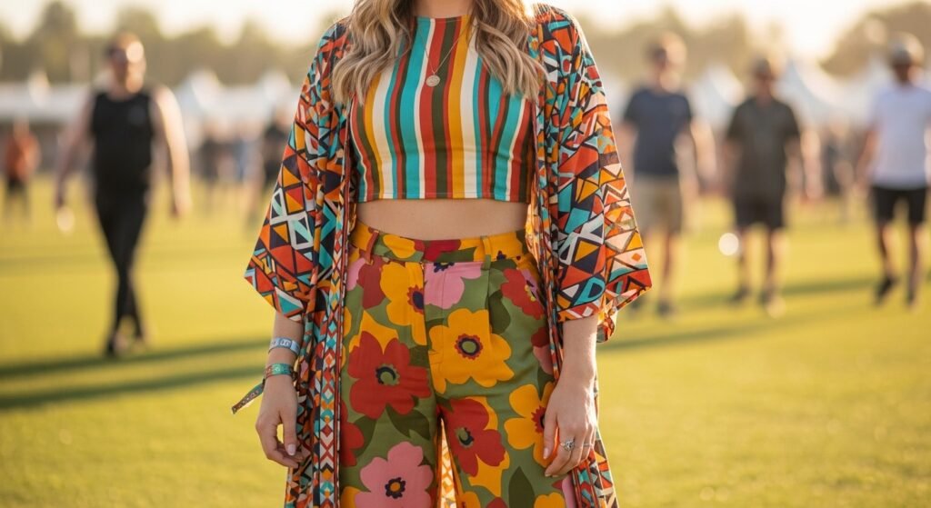 Pattern mixing has found its way back on festival wear. The creative use of stripes, florals, and geometric prints are put together. Modern styling revolves around the harmony of the color selections and this aspect guarantees that the dramatic mixes do not seem insensitive and distracting but instead looks both considered and fashionable.