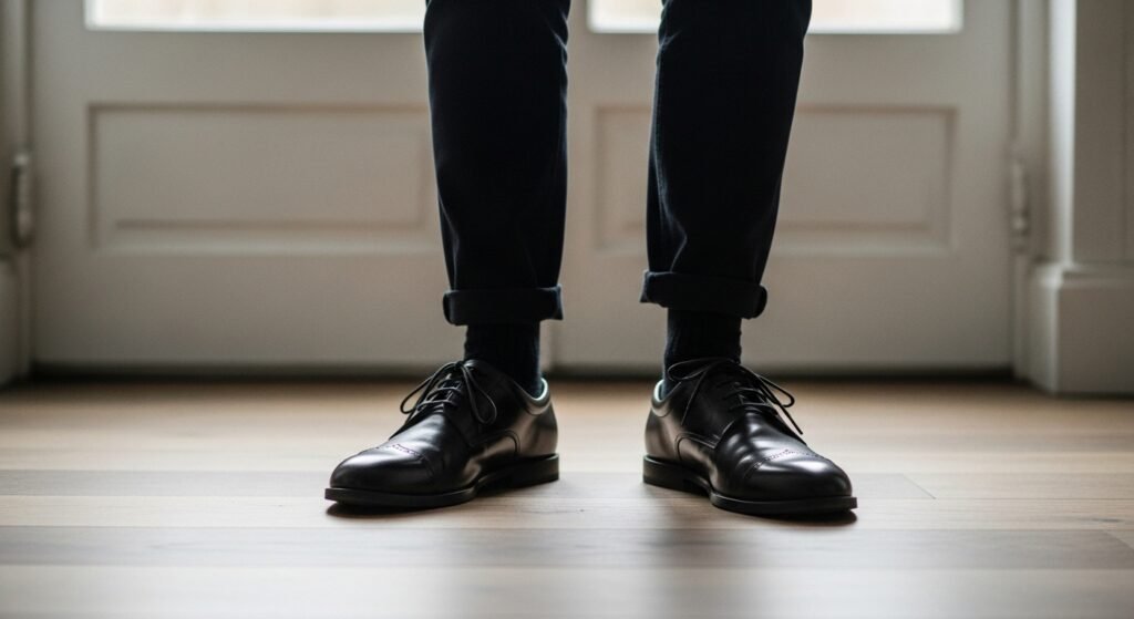 Shoes should balance the outfit. Bulky shoes on slim frames or extremely slim shoes on heavy builds look mismatched. Proper footwear grounds the outfit and completes the look harmoniously.