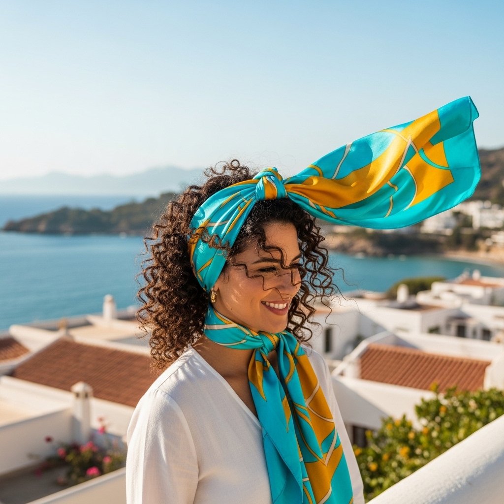 The scarf made of lightweight silk or satin can be much more versatile than one would guess. It can carry curls and handle the windy weather, as well as assist in making quick styles easier on sightseeing days when people are busy.