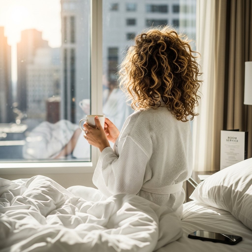 Pillowcases in the hotel rooms or new bed linens can be more frayed than planned. Tying hair into a loose braid prior to going to sleep or wrapping it in a soft scarf may serve as a way of keeping curls in order and having a nicer feel the next day.