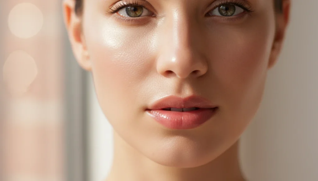 Fine lines can be highlighted by an intensive glow on the cheekbones and nose. Instead of using thick highlighters, use a subtle highlighter balm. The surface is very smooth and does not emphasise the texture as it reflects light.