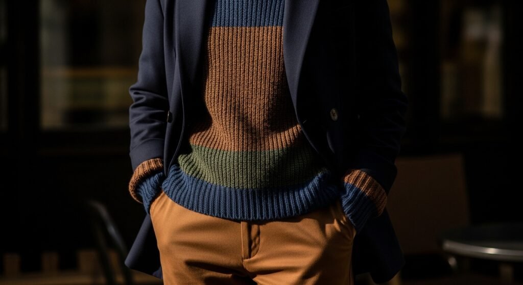 Layering creates dimension. Wear a lightweight knit beneath a charcoal or navy blazer. Earth tones blend smoothly. Opposite colors should not be vociferous, but harmonious. The palette is intelligent and remains harmonious.