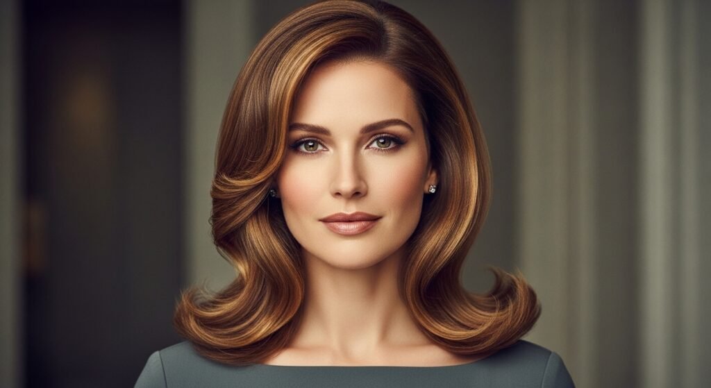 Cate Blanchett usually prefers light and luxurious waves. Upon square faces, flowing texture reduces the sharp angles. Keep the waves loose. A side part enhances balance.