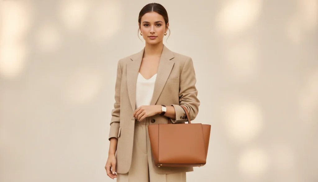 Accessory trends are characterised by slim watches, structured totes and delicate earrings. The outfit is carefully selected along with her pieces, rather than being its highlight.