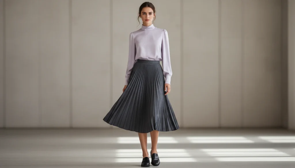 Pleated skirts and pants are being revived with some new proportions. The pleats are clean and made with a touch of texture and motion, bringing out a sense of elegance that is not of traditional character.
