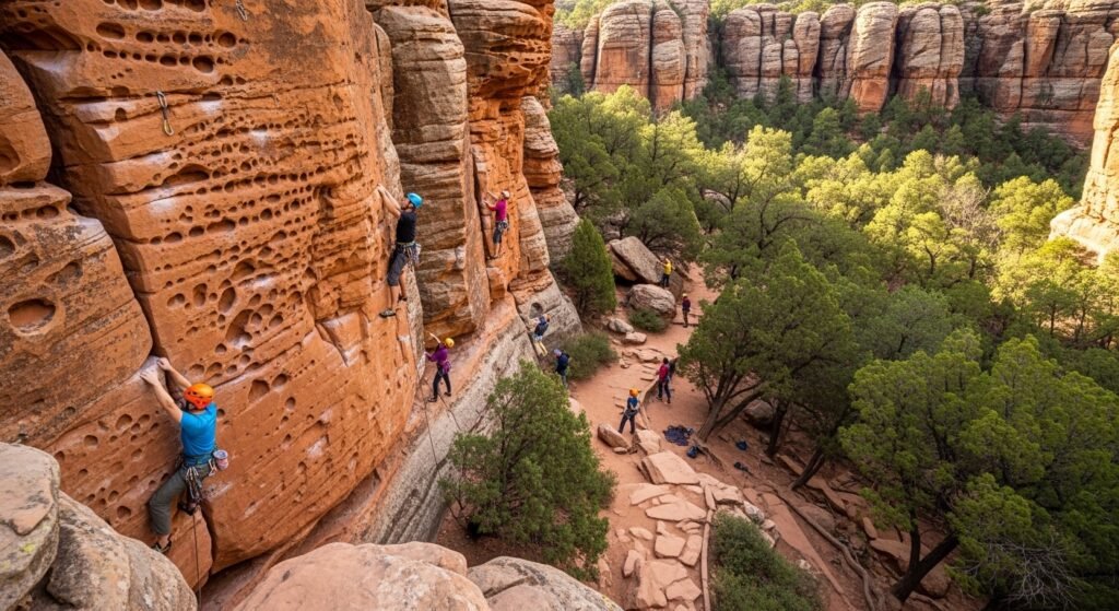 It is characterized by sandstone arches and pocketed walls. The climbing is diverse and easy, and it is open to various levels of skills. Bare rocks and wooded roads make it more comfortable in the times of the extended outdoor sessions.