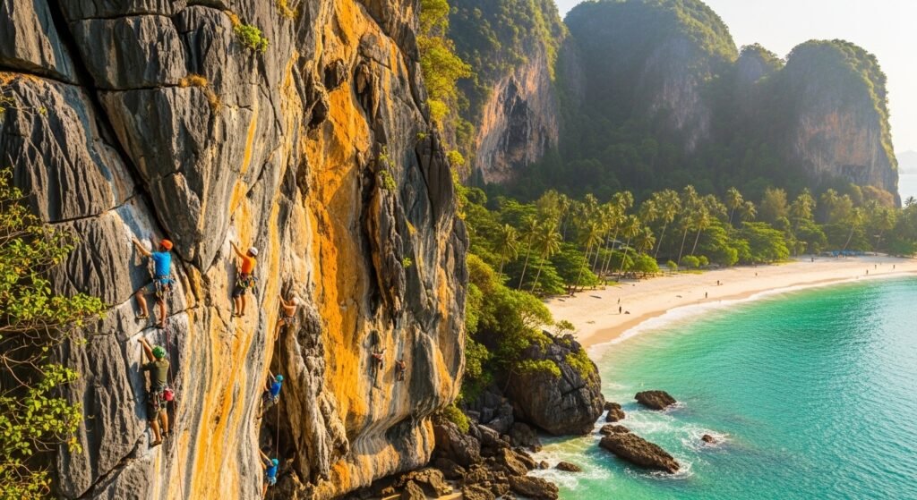 Appearances are removed, and Railay is isolated by only being reachable by boat and it feels like one had been taken out of regular life. Different sport routes are offered by cliffs of limestone. The wind of the sea beneath may be a constant companion as one steps with careful strides up the ladder.