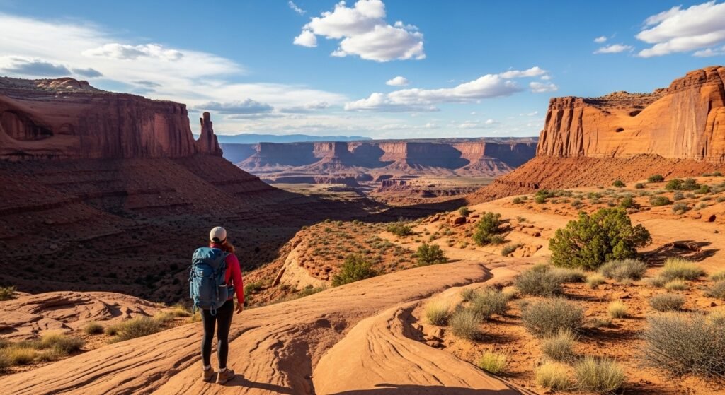 Secret Slickrock Trail is not very full of people as compared to the neighboring trails and offers gross expansive views without any tough ascents. The scenery is welcoming. During the journey, a visitor is impressed by the expansive red rock landscapes, serene environments, and unbroken photo viewpoints on the journey.