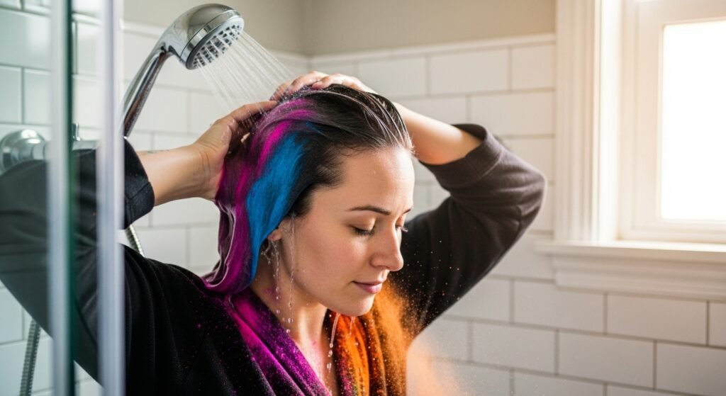 On getting home, do not forget to rinse your hair with clear water. This assists in getting rid of free floating color particles. Avoid using hot water. Lukewarm because it is softer and will not make the head drier or livelier.