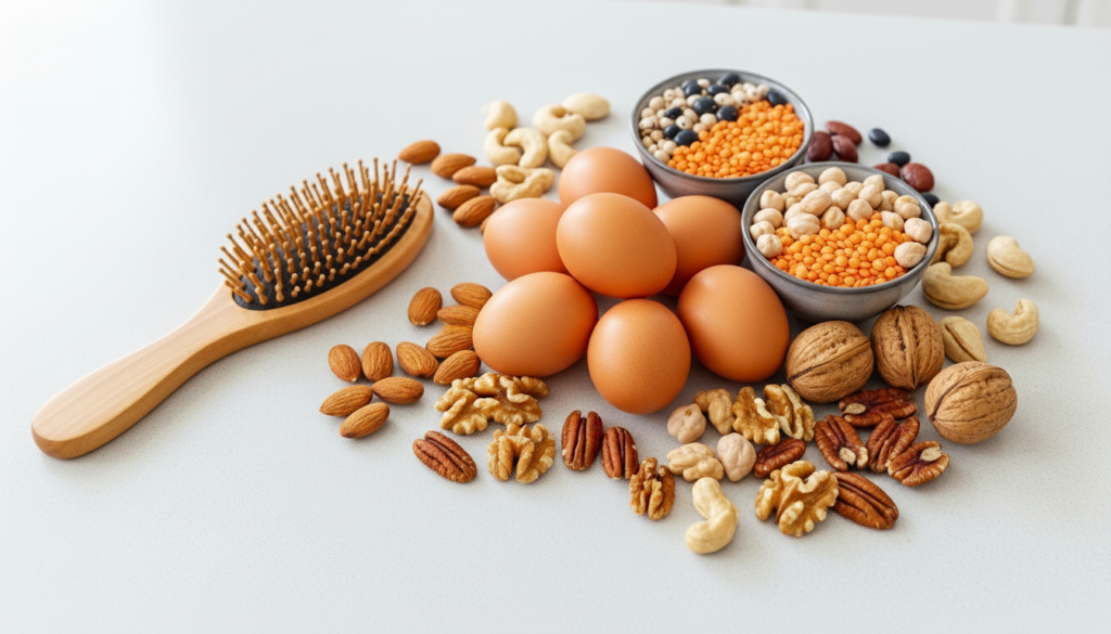Biotin is a B-vitamin that plays a major role in keratin production. Consuming foods high in biotin, such as eggs or legumes, helps strengthen the internal structure of your hair for better durability.