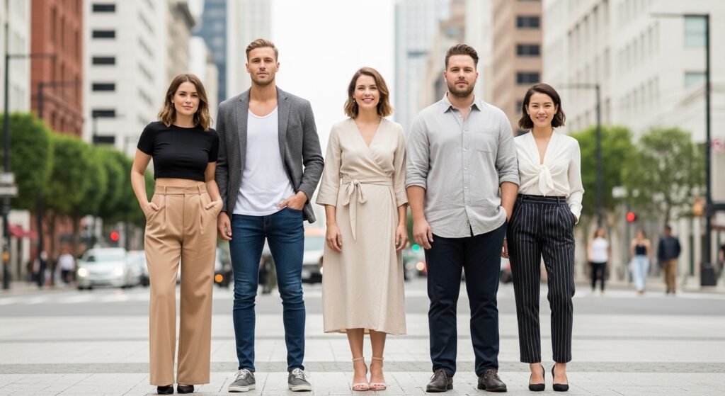 Others think that the best way to go is through oversized dressings. As a matter of fact, well-fitting clothing, both casual and customized, can be more comfortable and professional. Shape does not necessarily have to be concealed; structure can at times form a harmonious, trendy appearance.
