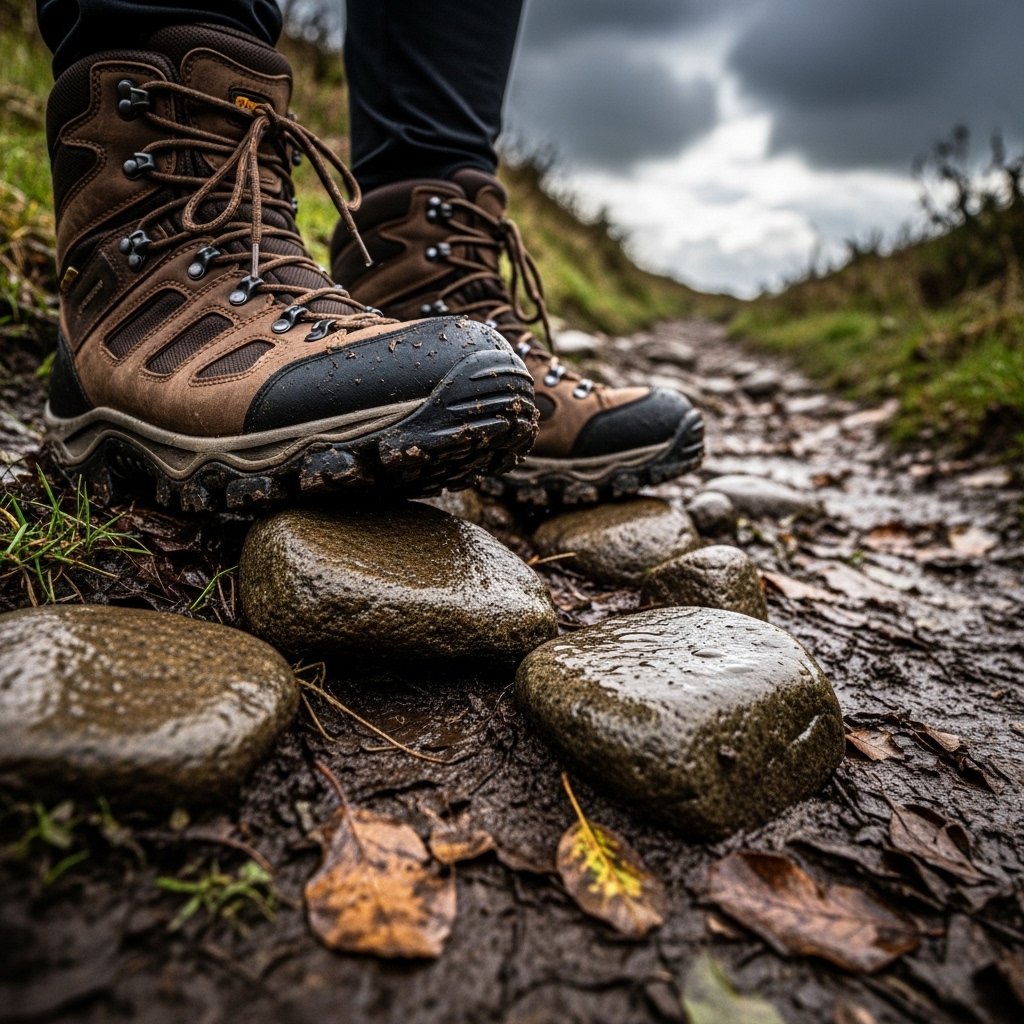 Rugged, all-purpose hiking up to the knees helps to stand your feet on the trail which is not straight. Socks are dry with waterproof material. Excellent traction helps one to remain on wet rocks or muddy trails. Long walks are less tiresome when wearing comfortable shoes.