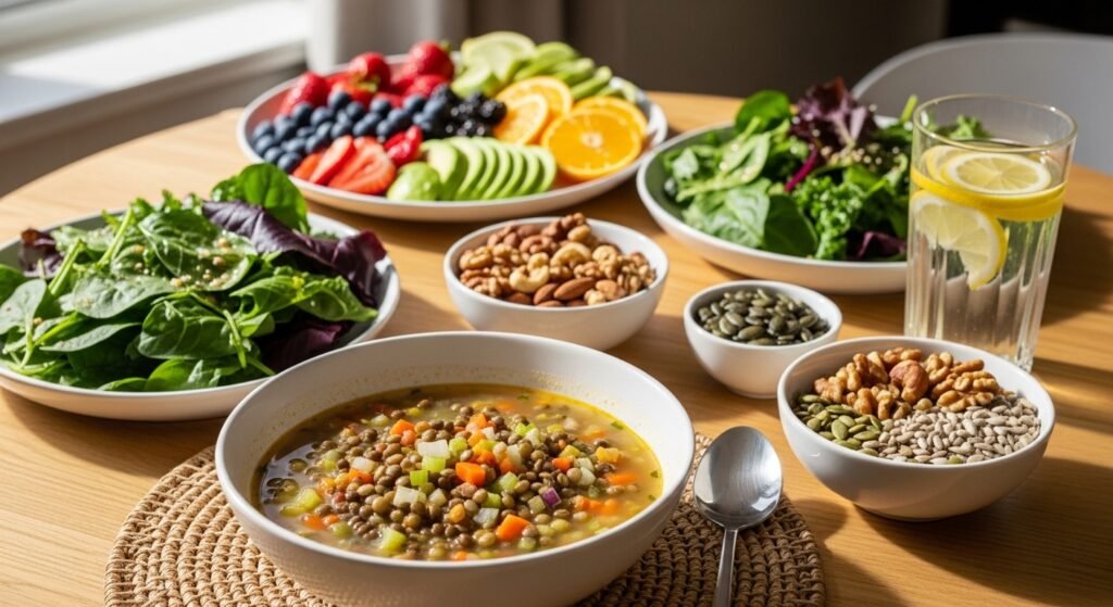 Healthy hair begins with balanced meals rich in protein, iron, and vitamins. Include lentils, leafy greens, nuts, and seasonal fruits. Hydration matters as well. Drink adequate water daily. Inner nourishment supports stronger roots and steady growth.