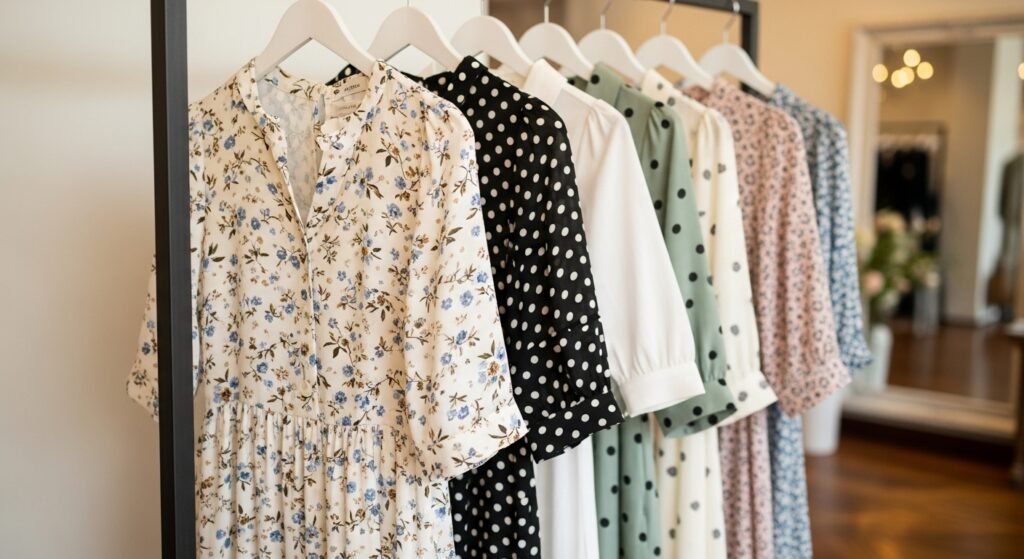 Printed dresses are effective and can wear simple jewelry and simple shoes. Since the pattern is already detailed, accessories do not need to be elaborate. This equilibrium helps to avoid excessive styling and make the appearance unified.