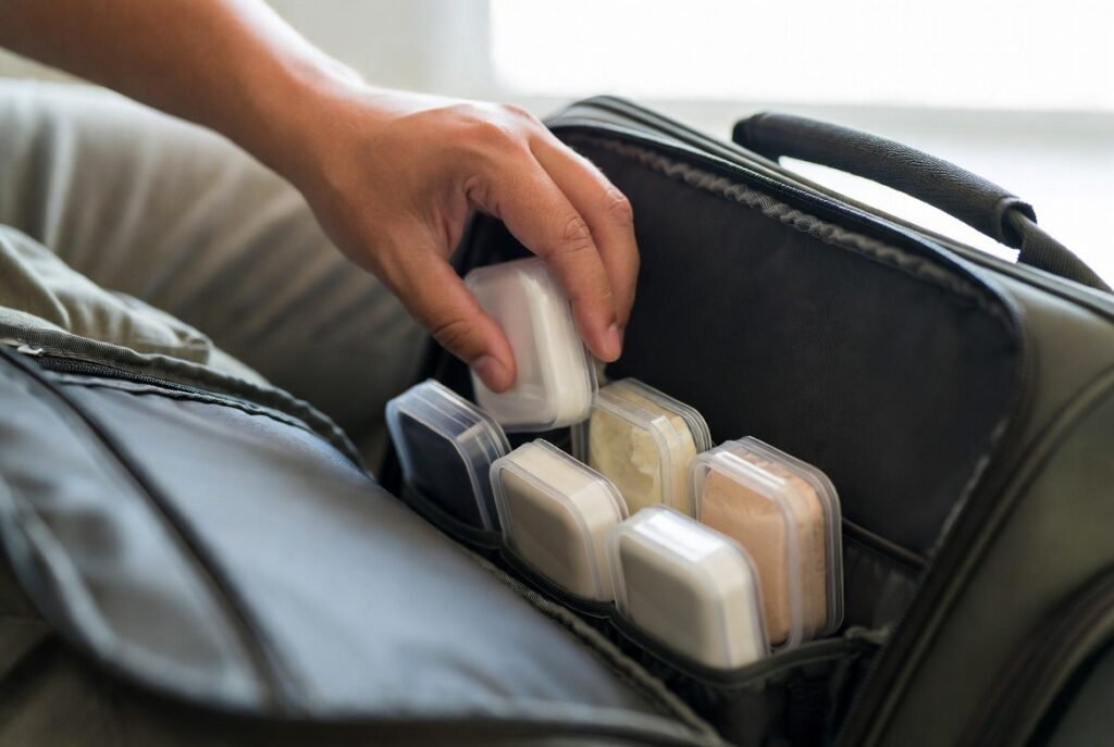 Travel-sized laundry sheets or a small laundry pouch help manage your own clothes without adding bulk. Keeping dirty items separate maintains organization and prevents odors from spreading throughout your bag.