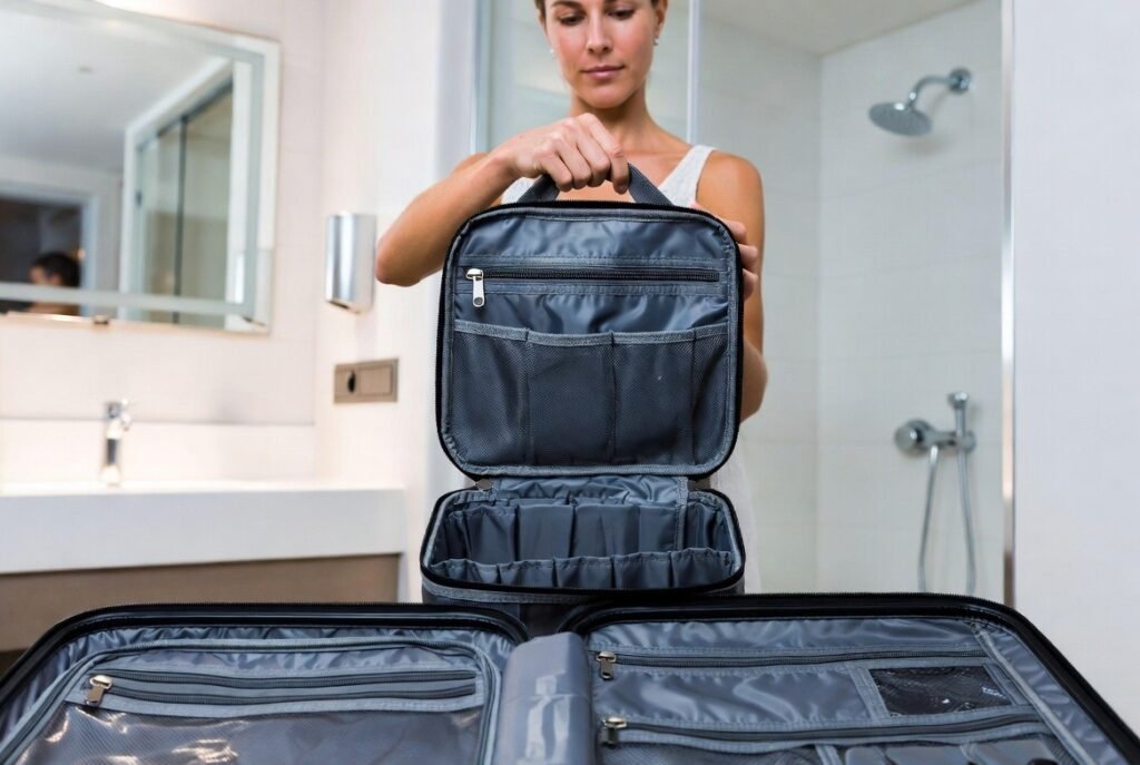 A foldable toiletry bag keeps all your essentials compact and accessible. Multiple compartments prevent spills and allow you to hang the bag in small hotel bathrooms. Once folded, it takes up minimal space inside your carry-on.