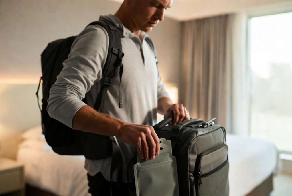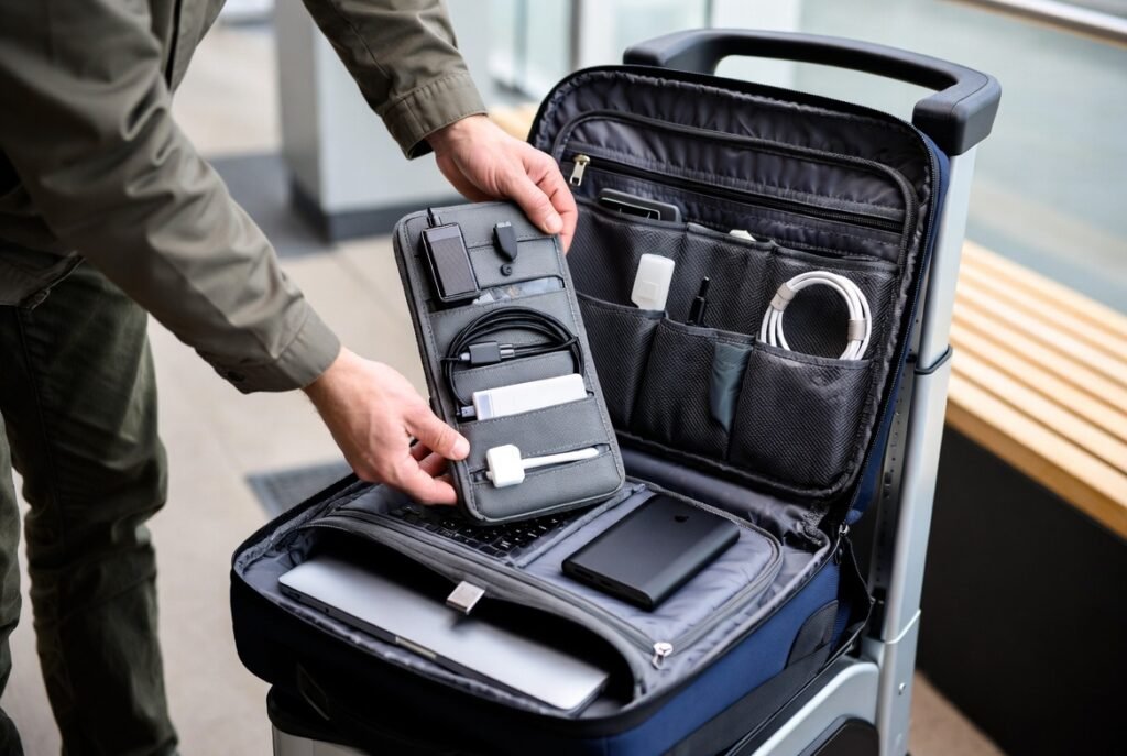 Chargers, cables, earplugs, and power banks can quickly clutter your bag. Slim tech organizers keep everything in one place without adding bulk. They protect electronics while ensuring you don’t waste time untangling wires during our trip.