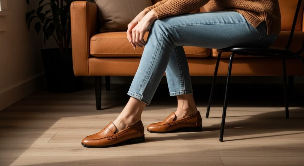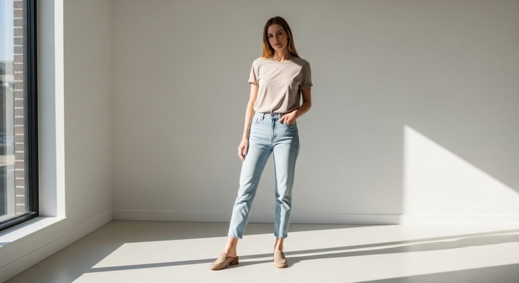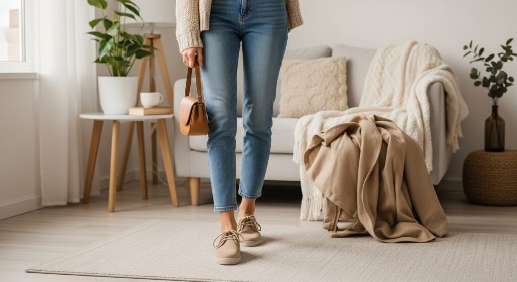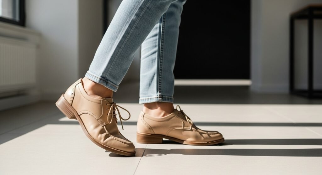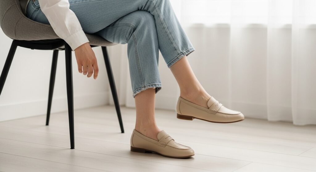 Beige and tan shoes work year-round. They feel light and breathable in summer while still blending beautifully with fall layers. This makes them a smart investment for styling light jeans across seasons.