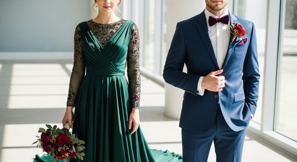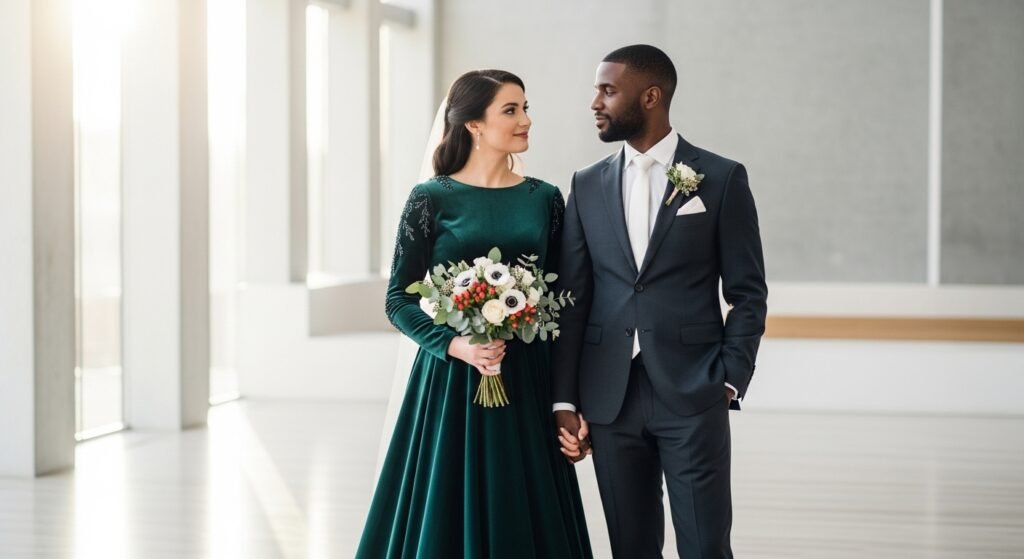 Winter weddings require attires that are elegant and at the same time warm. The season is better with more fabrics, darker colors and stylish layering pieces, which are just impossible during warmer seasons. It is aimed at appearing dressed-up without chilling during the ceremony or sweating at the gathering. It is about texture, structure and considered accessories instead of displaying body. Whether it is on an evening party or relaxed daytime ceremony, winter style gives space to drama, sophistication and comfort. Selecting the proper materials and the shape will see you dressed up and you can always feel more comfortable in the cold. This is the way you can look beautiful and at the same time be practical at a winter wedding.